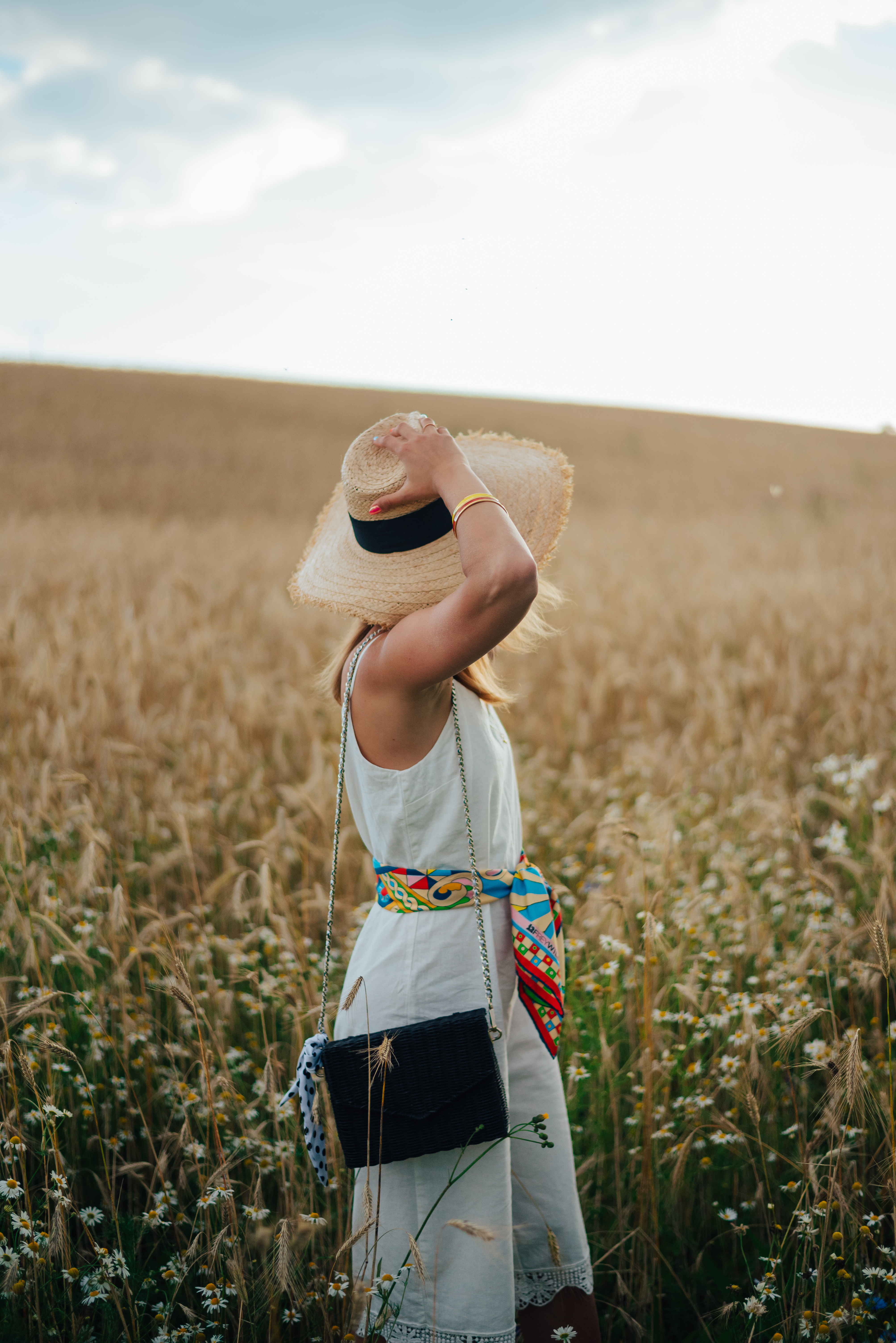 V outfitoch mám veľmi rada rovnováhu. Síce sa vždy teším, keď si môžem obliecť niečo nové, najlepšie sa cítim vtedy, keď je to skombinované s niečím, čo mám overené a poriadne „vynosené“. Dnes mám z tých „overených“ kúskov na sebe šľapky, ktoré, paradoxne, na fotke nevidieť, ale nosím ich celé leto, takže určite viete, ktoré to sú. Kupovala som ich v zľavách v Reserved minulý rok a nosím ich takmer nepretržite už druhé leto. K tomu košíková kabelka zo Zary, ktorá ma po svete sprevádza od konca júna a klobúk, ktorý som si najskôr kúpiť nechcela, no napokon som jeho čaru neodolala. O tom, že som tomu úprimne rada, vám asi písať nemusím.