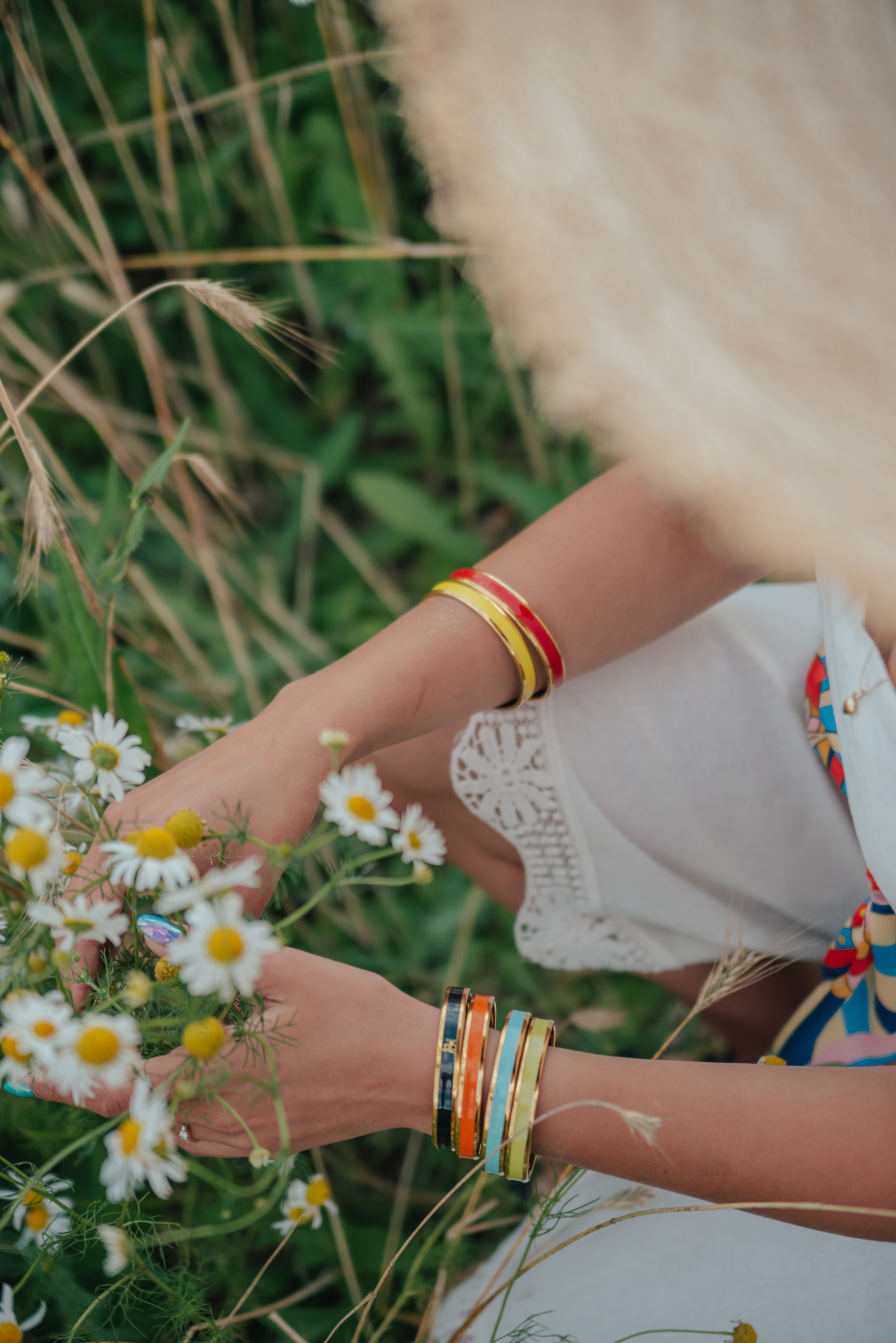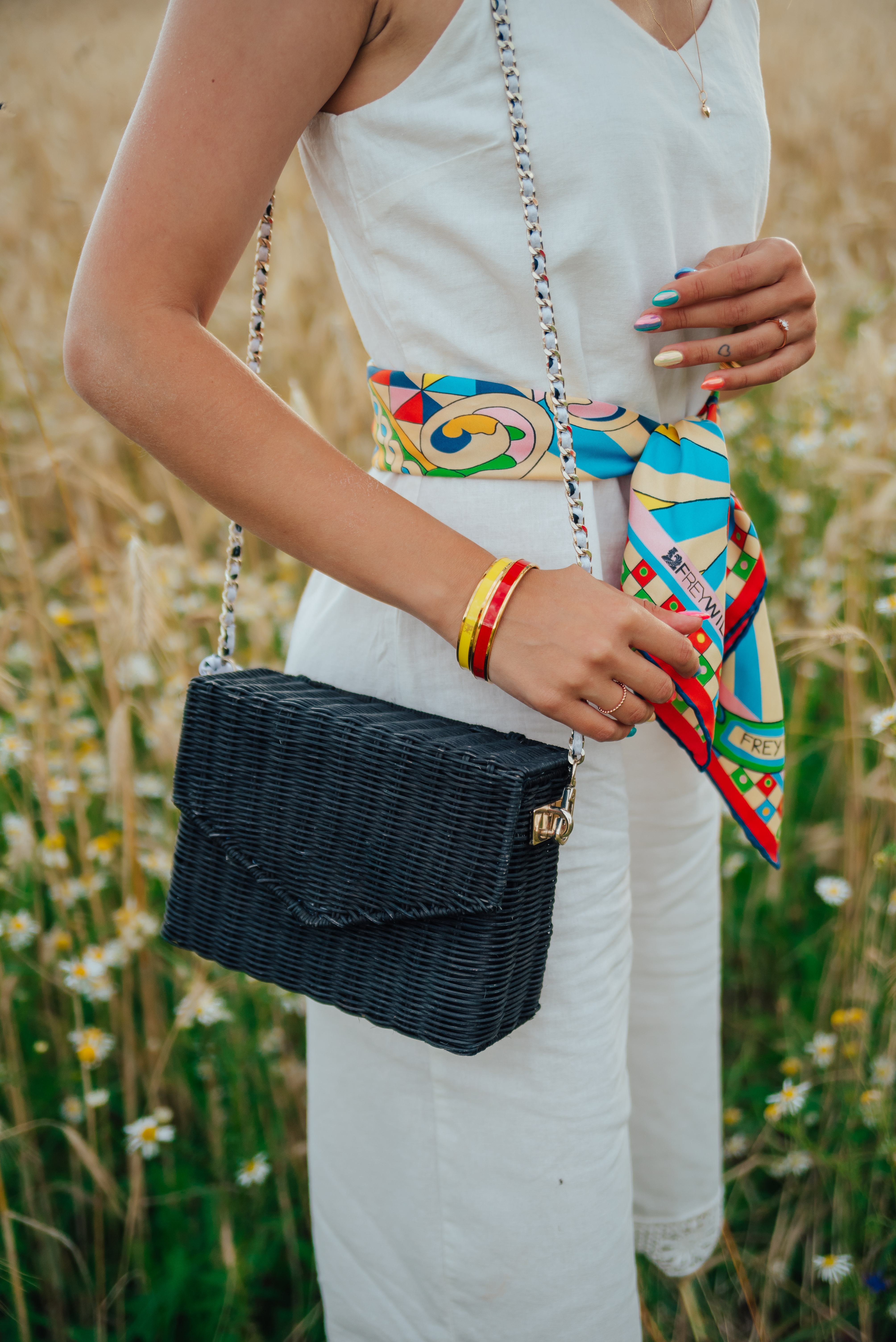Základom outfitu je jednoduchý ľanový overal, ktorý mi mamina kúpila v sekáči za 2€. Je nesmierne pohodlný a cítim sa v ňom ako bábätko. (Možno v ňom aj tak vyzerám. :D) Z tých nových vecí dnes nosím farebné náramky z kolekcie Monochrome od Freywille, z ktorých som bola „paf“ od prvého momentu. Aj keď ich šperky popretkávané umením milujem, práve takáto jednoduchá verzia náramkov bola presne to, čo mi u nich doteraz chýbalo. Dajú sa nosiť samostatne a zároveň krásne doplnia každý motív z klasických Freywille kolekcií.