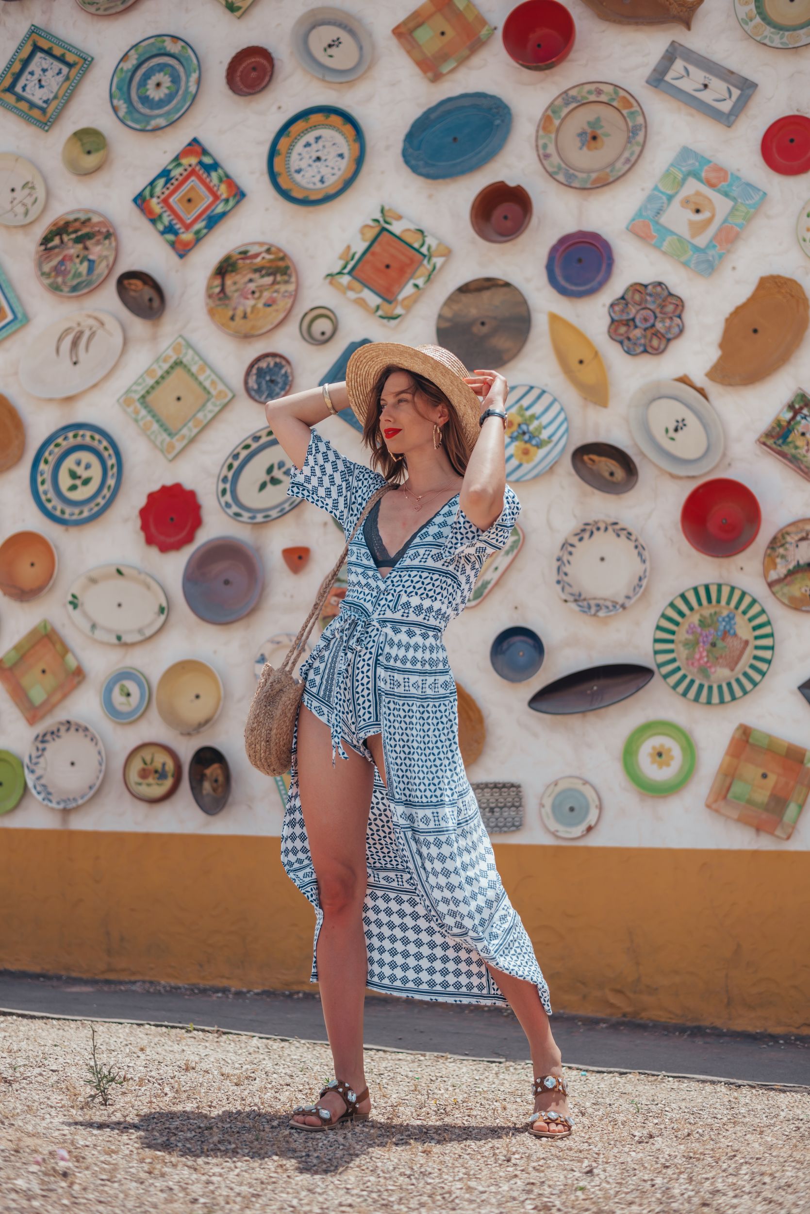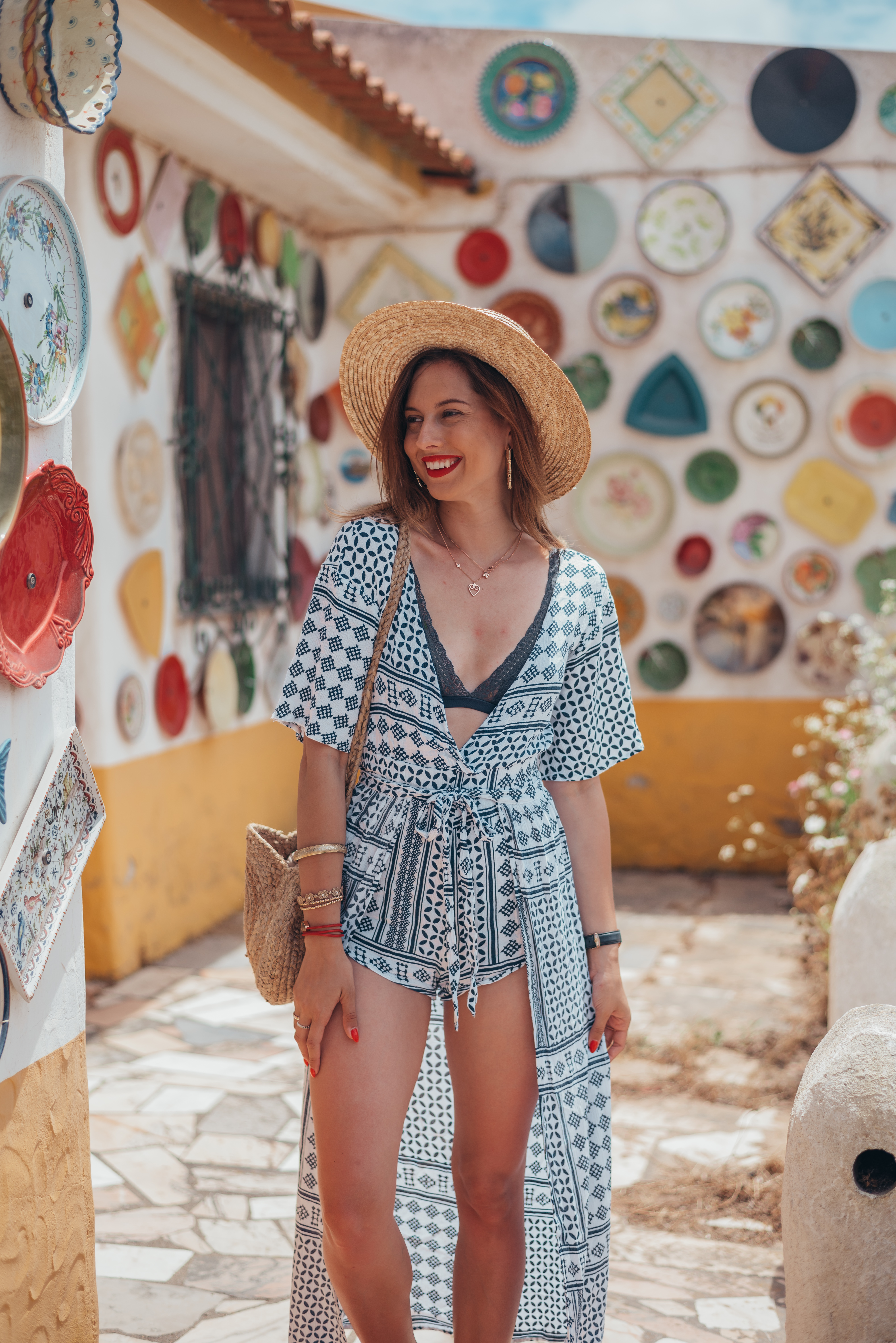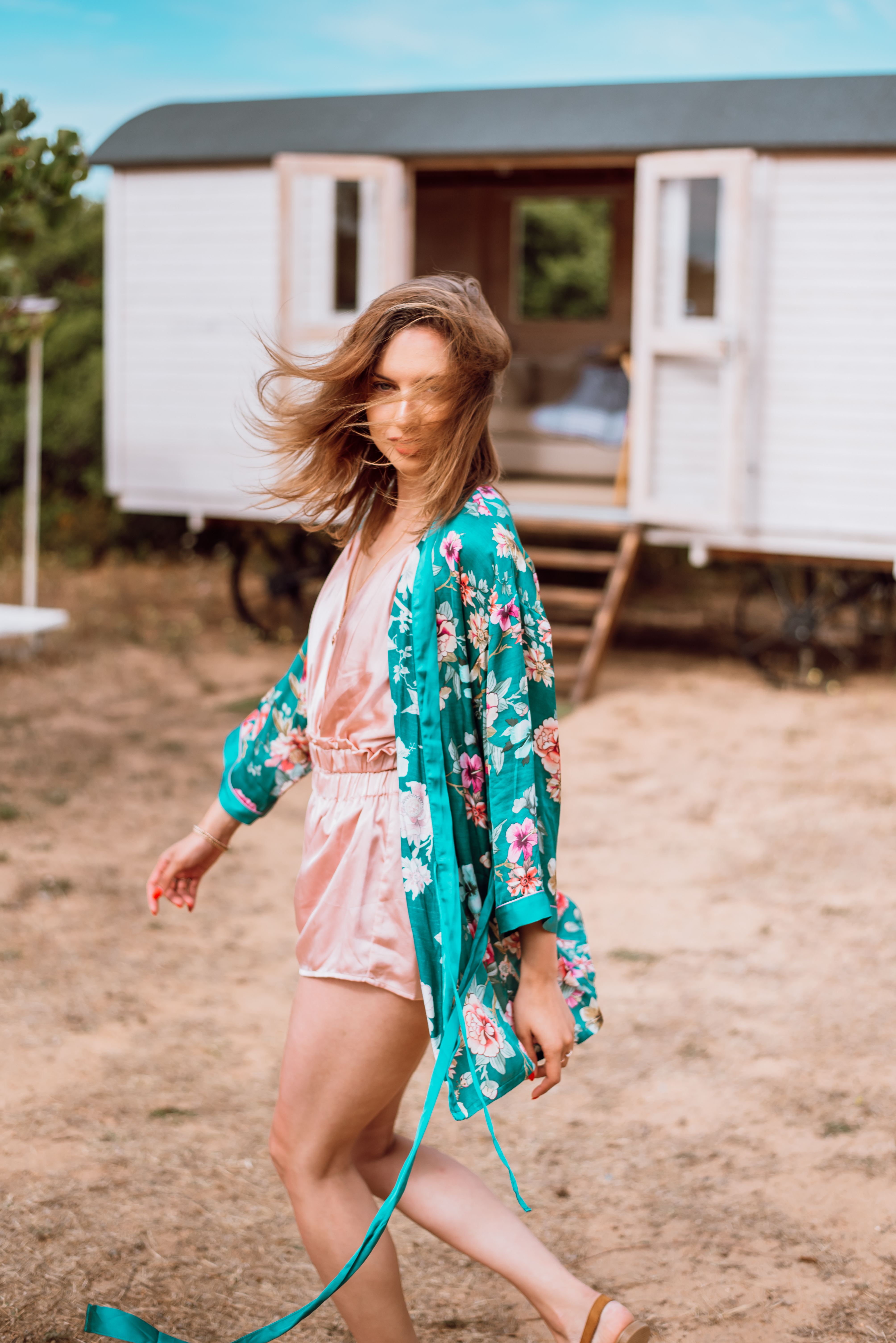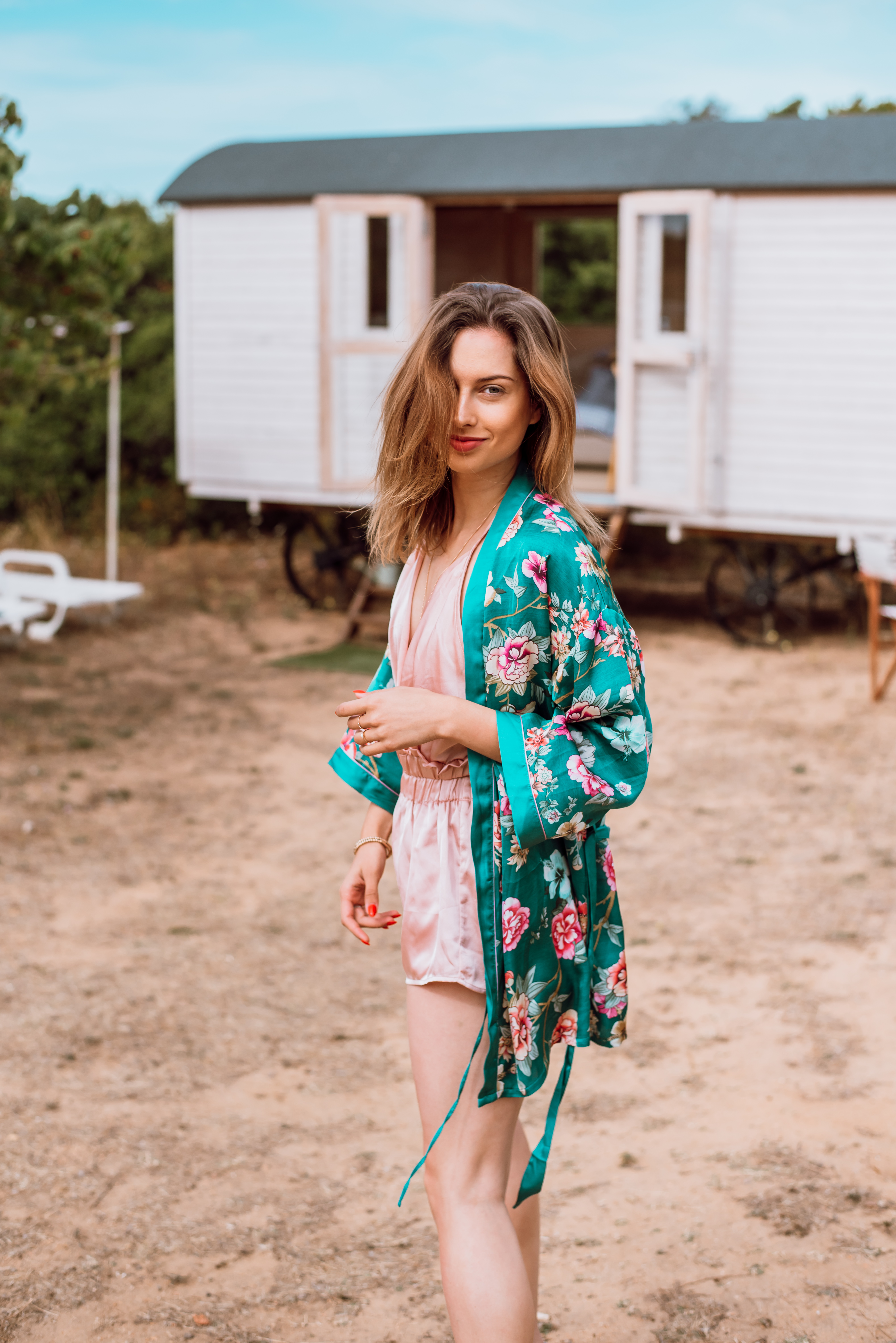 Kimonové šaty: NA-KD, Klobúk: H&M, Okuliare: Meller, Kabelka: Mango