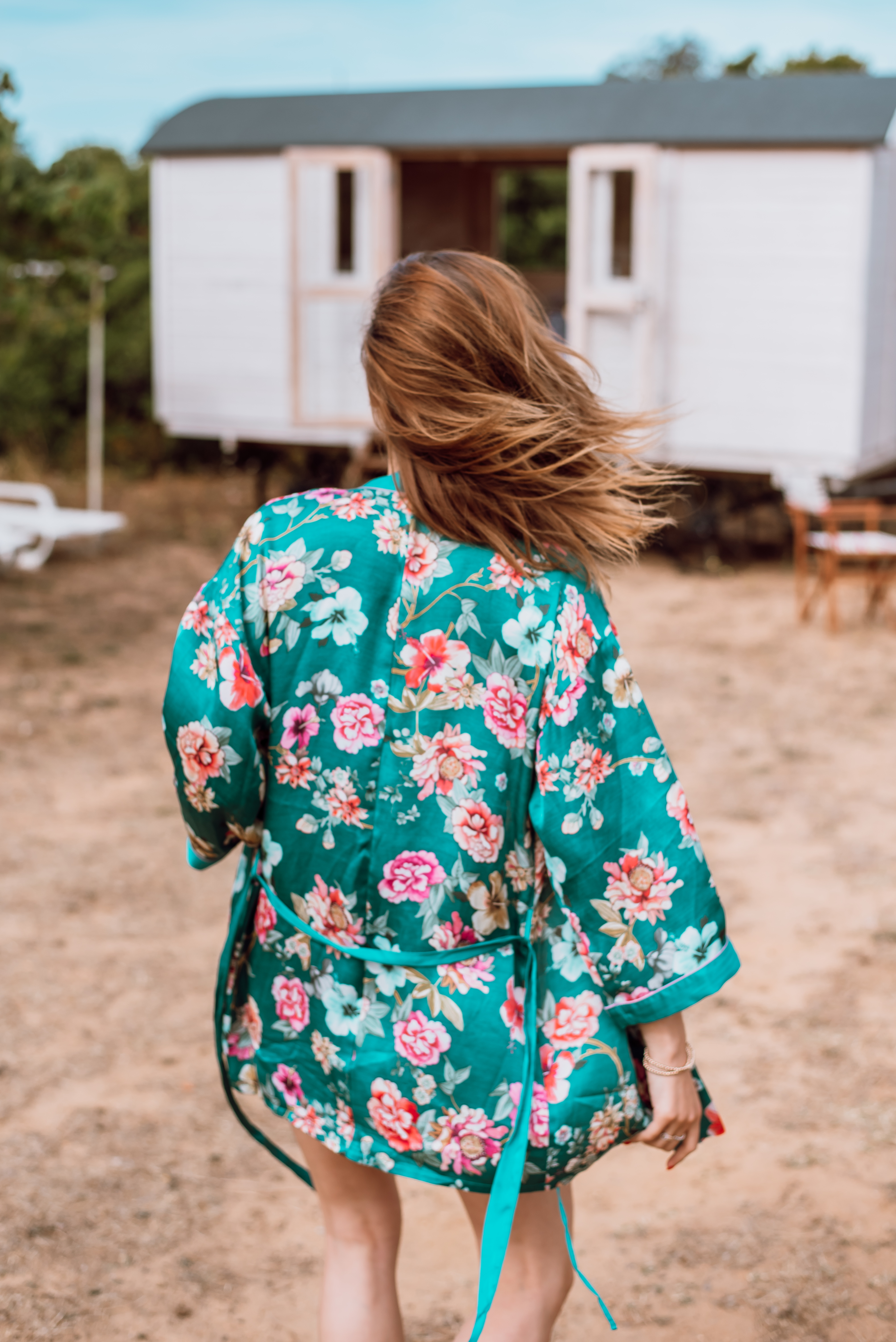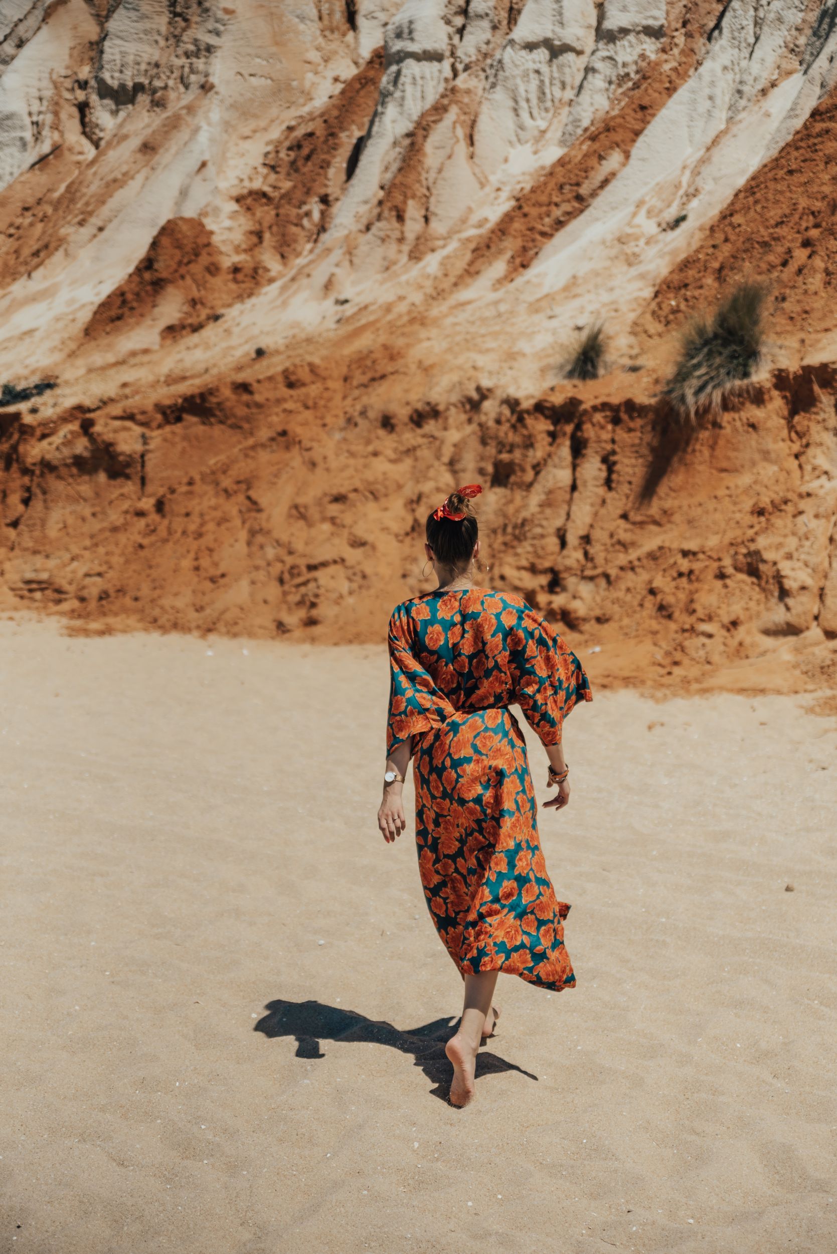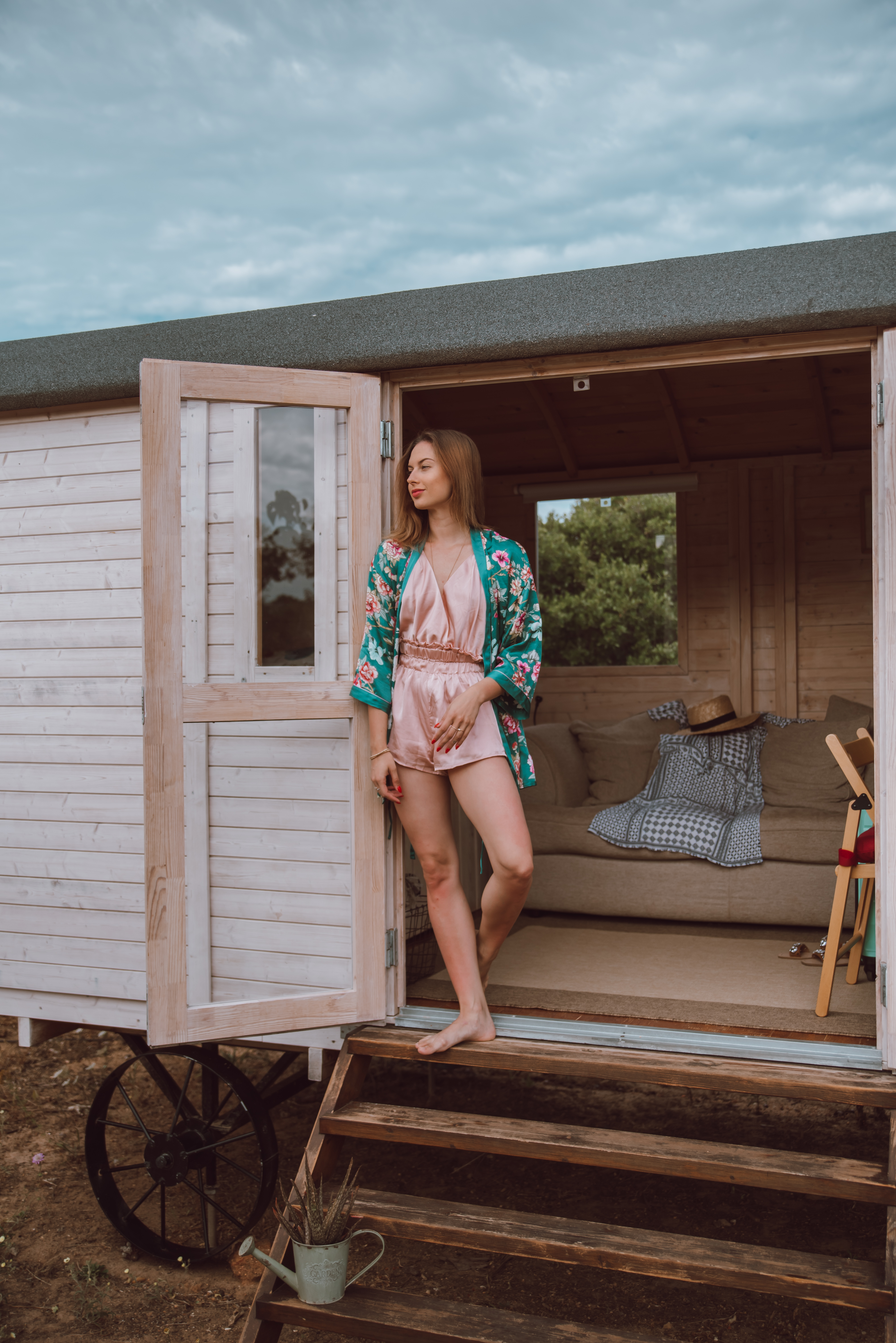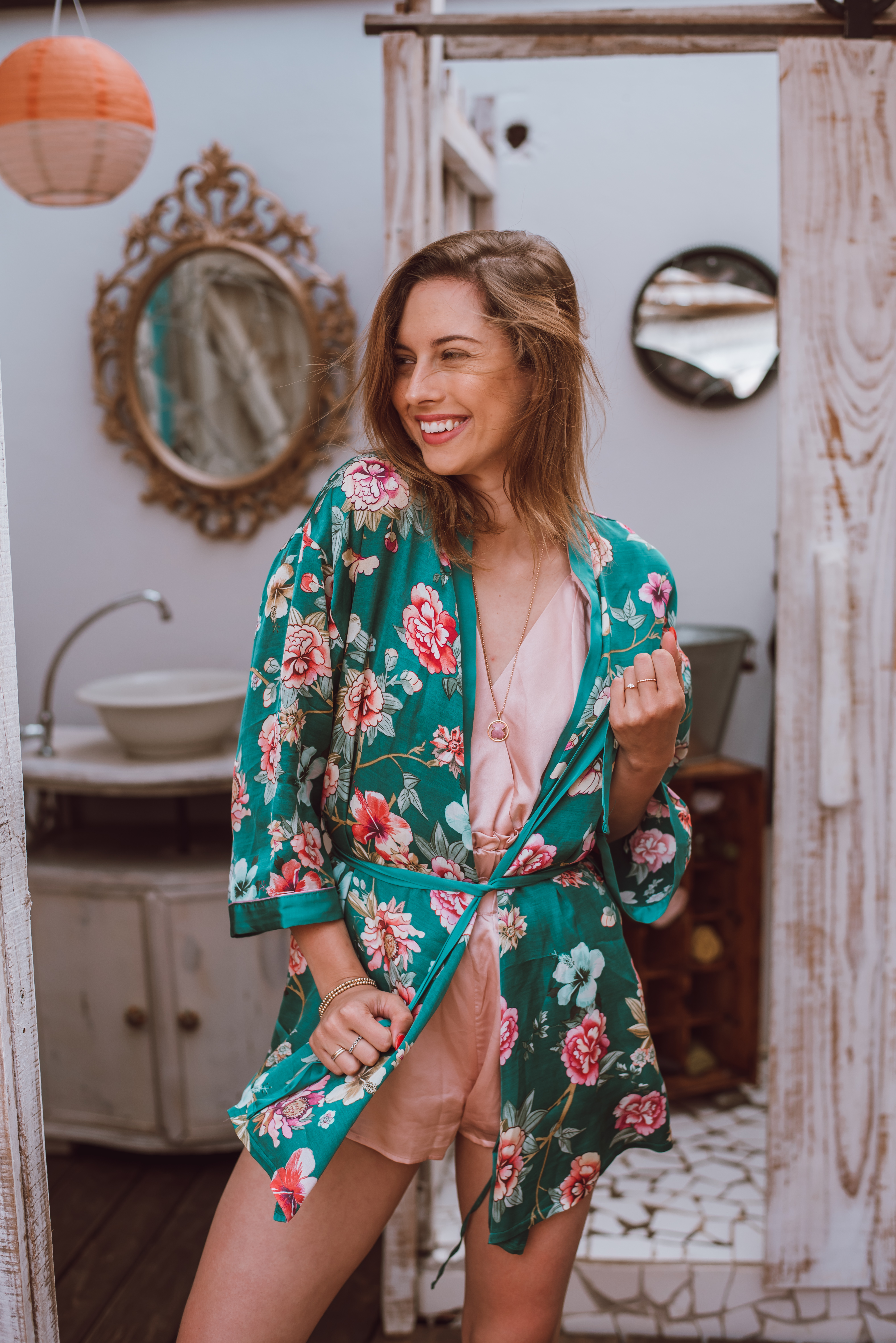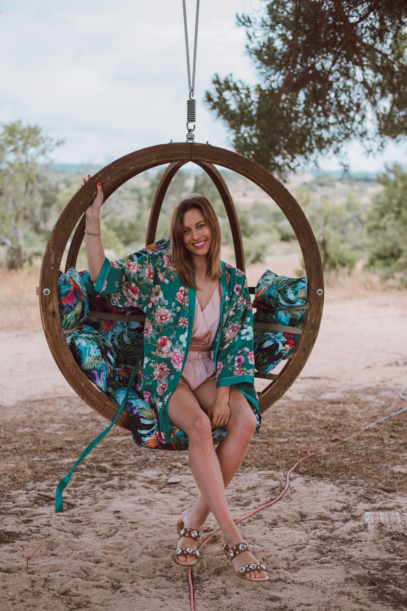 Kimonové šaty: NA-KD, Klobúk: H&M, Okuliare: Meller, Kabelka: Mango