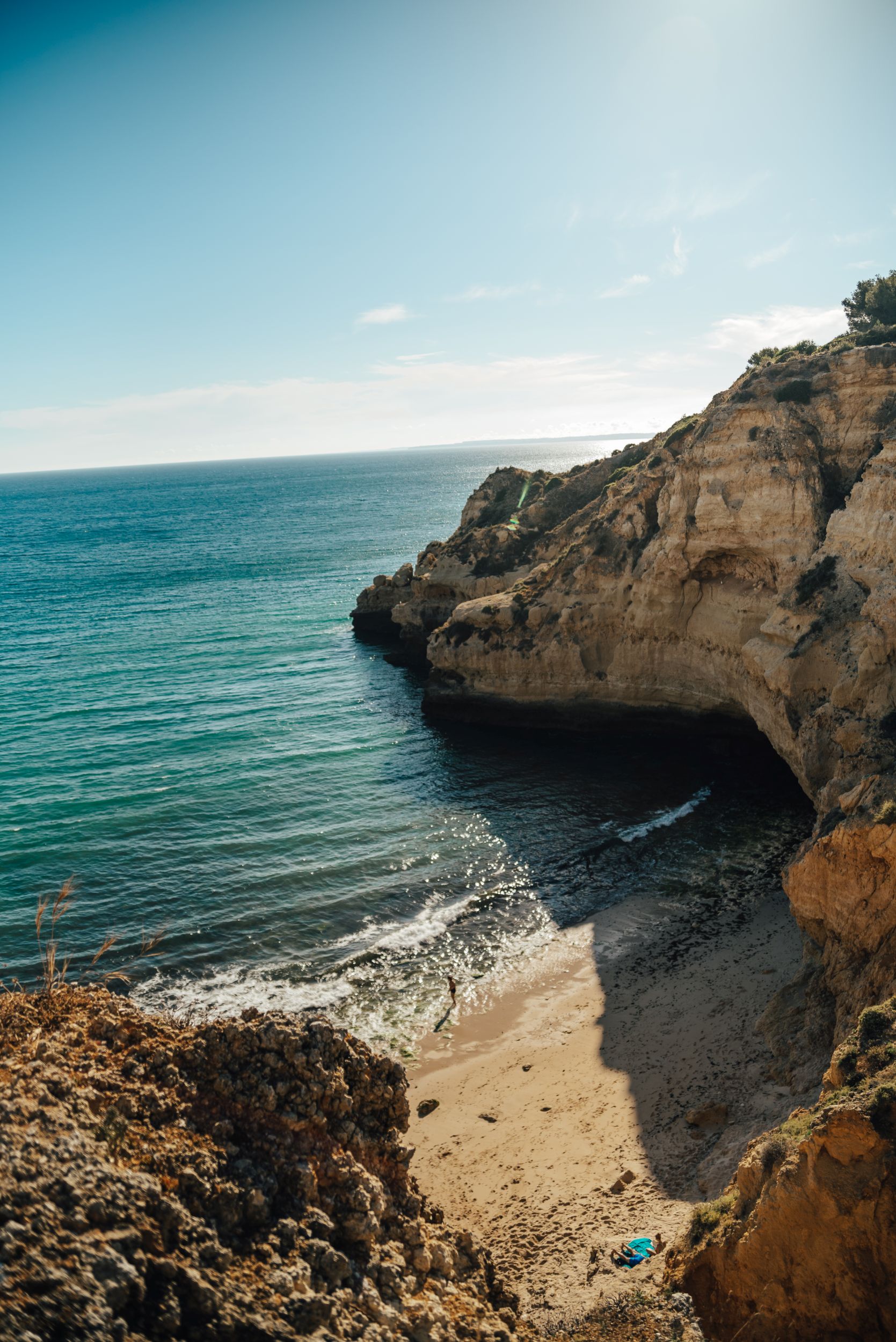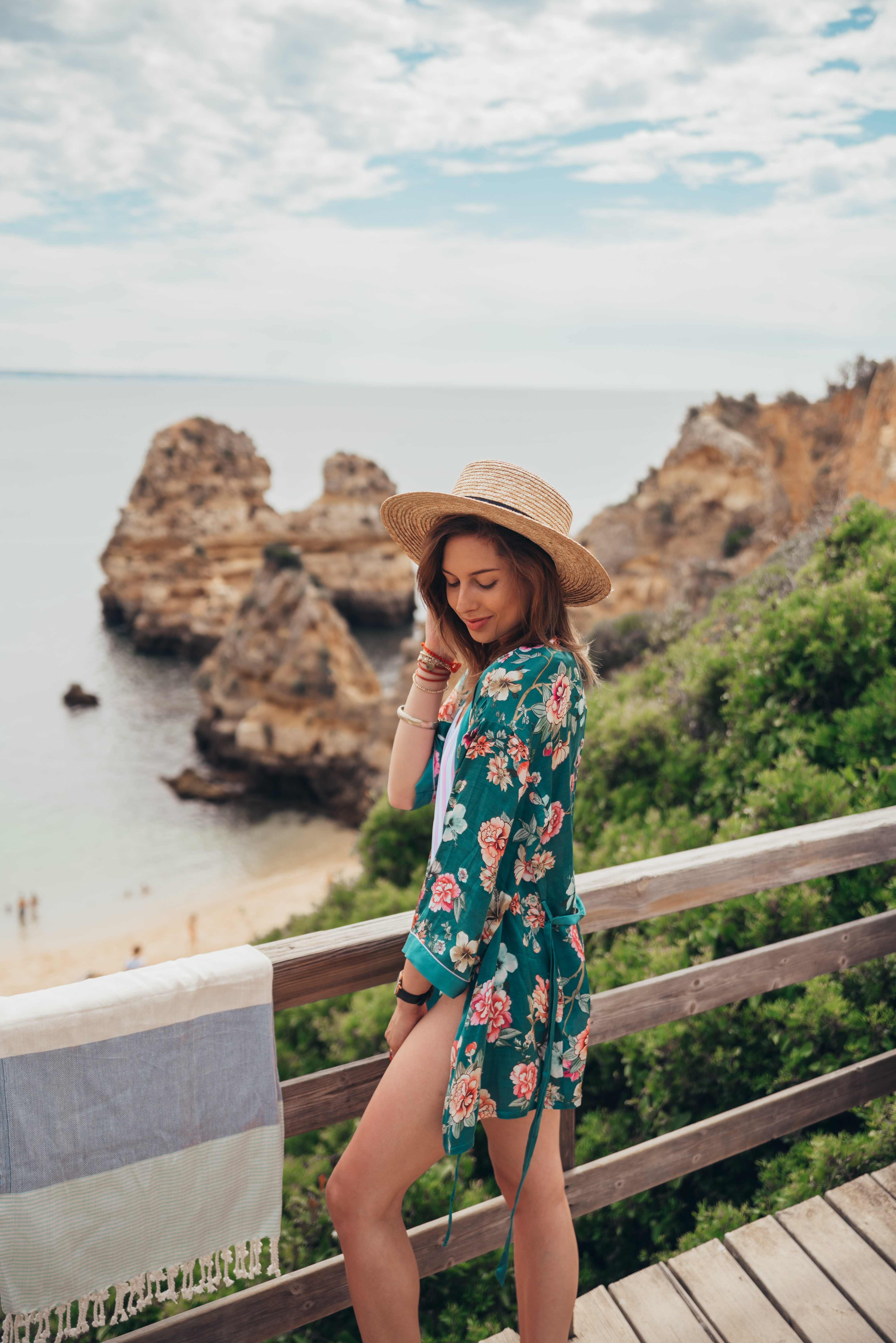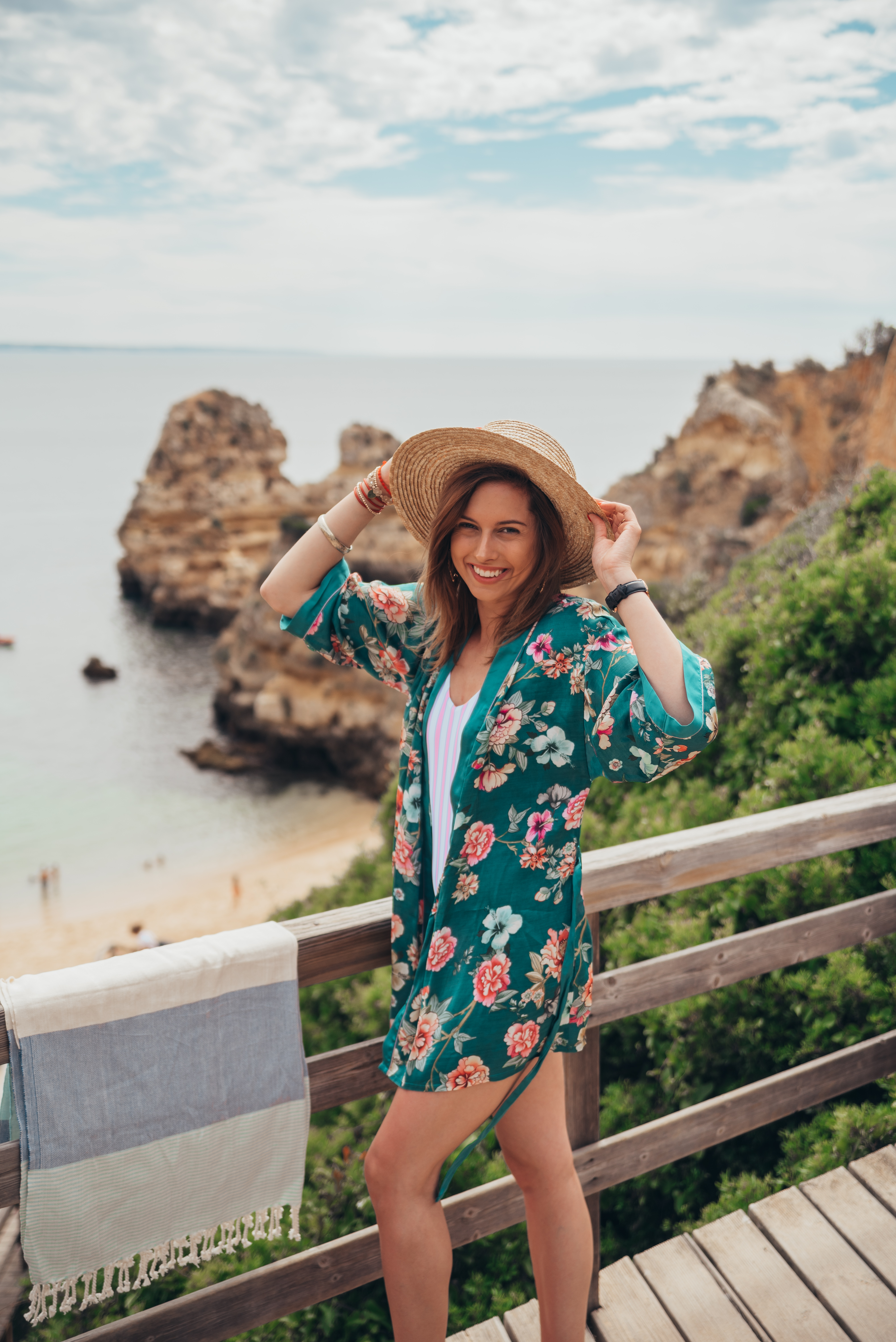 Po kayakoch a výbornom obede (či obedo-večeri?) smerujeme do Luz (neďaleko LAGOS), kde nás čaká magické ubytko na ovčej farme. Míňame krásne kríky plné kvetov, predavačov citrusov a nádhernú keramiku. Po ceste si robíme zastávku v Carvoeiro a plánujeme si dať kávu a niečo sladké pod zub. Usadíme sa v peknej (na pohľad pomerne) posh reštike a čakáme, kým nás niekto obslúži. Na naše prekvapenie „no cakes“ a „without food no coffee“, tak reku, ďakujeme, nechajte si. Sadáme si na kamenný výbežok a pri tej kráse aj zabúdame, že sme nejakú kávu vôbec chceli. Jediné, čo chýba k absolútnej dokonalosti, je pohár vína… Samotnú fľašu ružového síce máme v kufri auta, no chýba nám otvárak a poháre, tak si ju necháme na neskôr. Okrem toho, máme pred sebou ešte pár kilometrov, takže romantika bude musieť počkať…