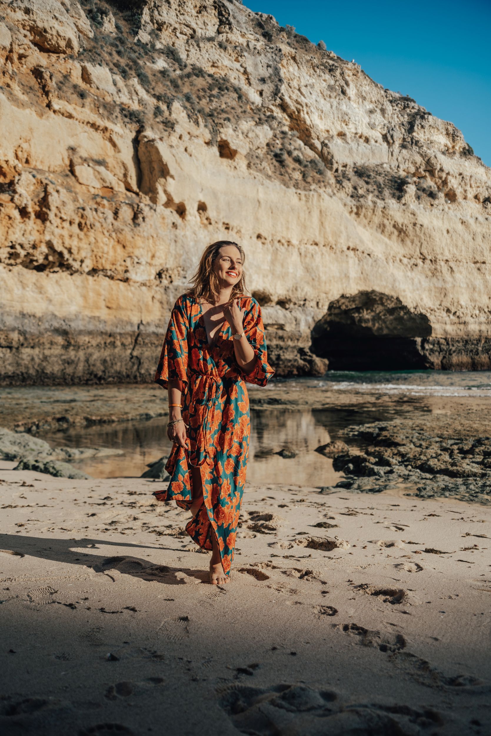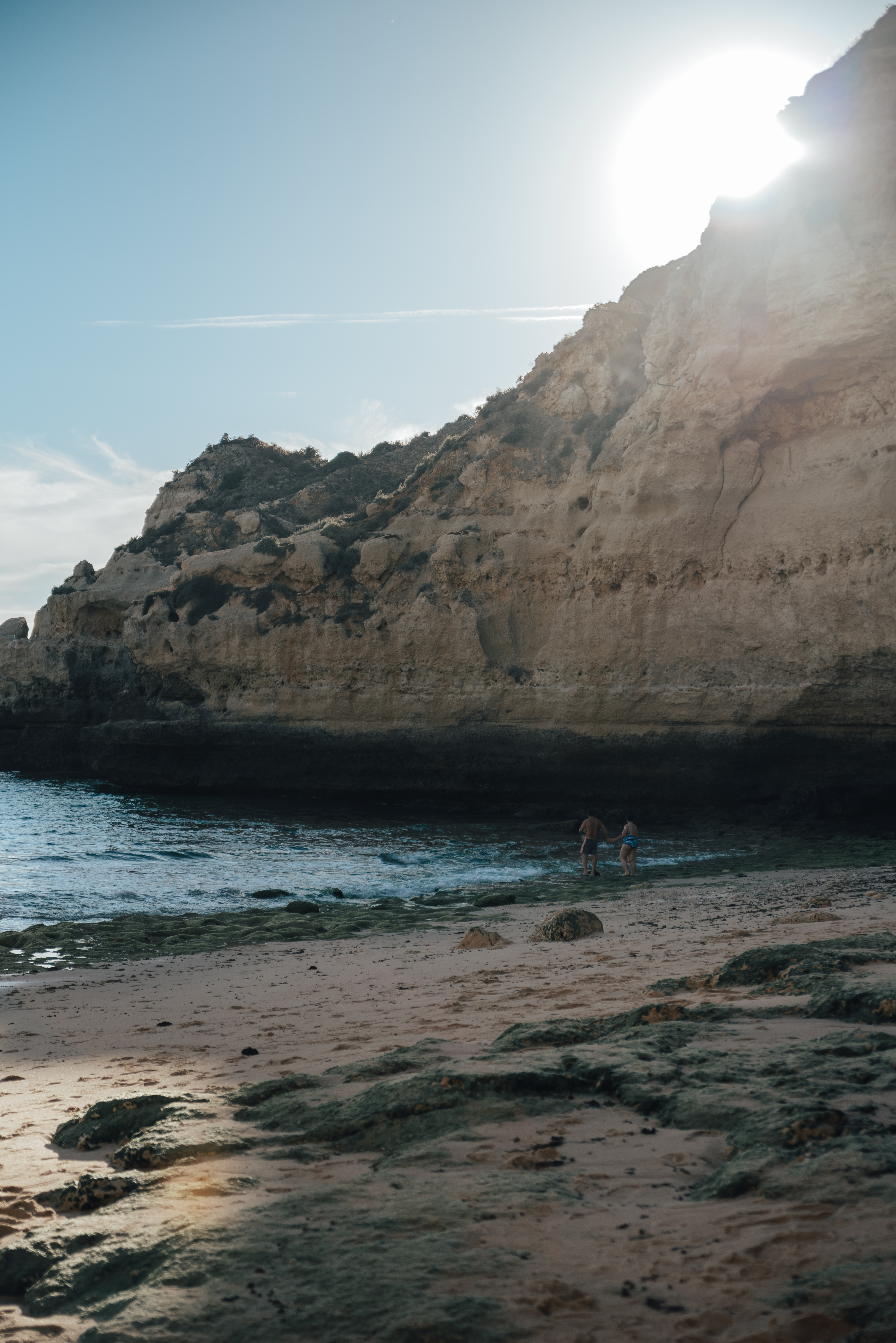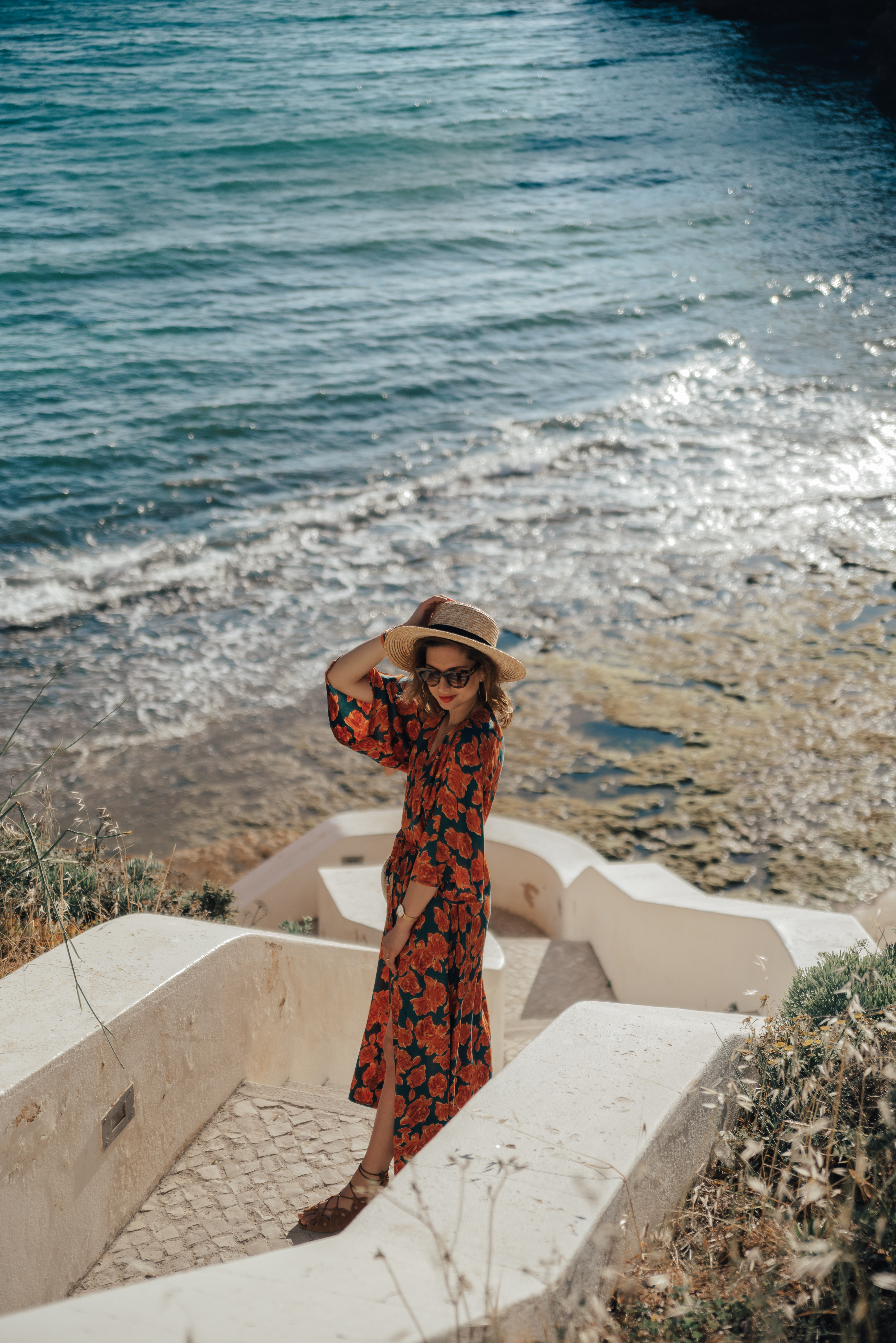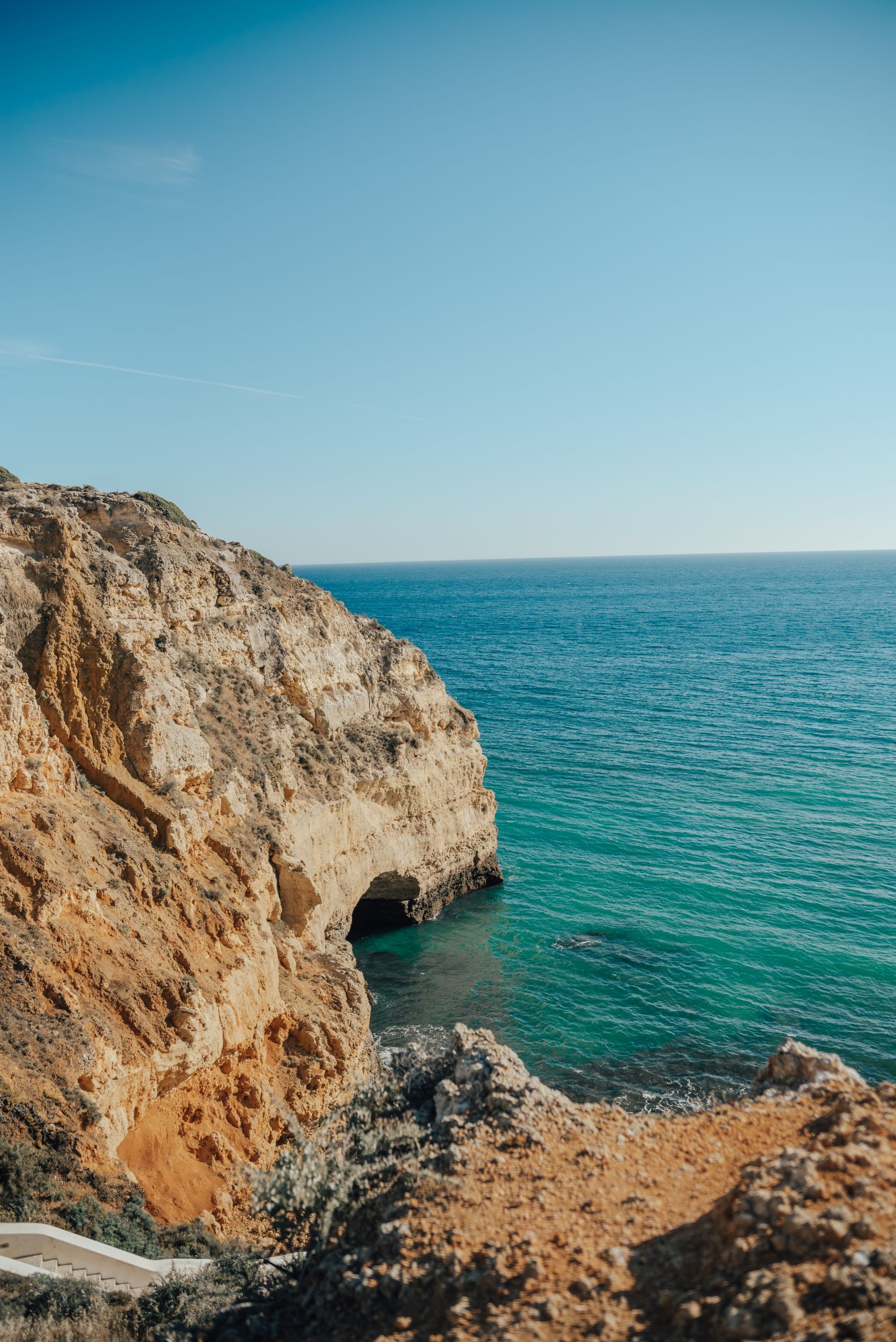 Po kayakoch a výbornom obede (či obedo-večeri?) smerujeme do Luz (neďaleko LAGOS), kde nás čaká magické ubytko na ovčej farme. Míňame krásne kríky plné kvetov, predavačov citrusov a nádhernú keramiku. Po ceste si robíme zastávku v Carvoeiro a plánujeme si dať kávu a niečo sladké pod zub. Usadíme sa v peknej (na pohľad pomerne) posh reštike a čakáme, kým nás niekto obslúži. Na naše prekvapenie „no cakes“ a „without food no coffee“, tak reku, ďakujeme, nechajte si. Sadáme si na kamenný výbežok a pri tej kráse aj zabúdame, že sme nejakú kávu vôbec chceli. Jediné, čo chýba k absolútnej dokonalosti, je pohár vína… Samotnú fľašu ružového síce máme v kufri auta, no chýba nám otvárak a poháre, tak si ju necháme na neskôr. Okrem toho, máme pred sebou ešte pár kilometrov, takže romantika bude musieť počkať…