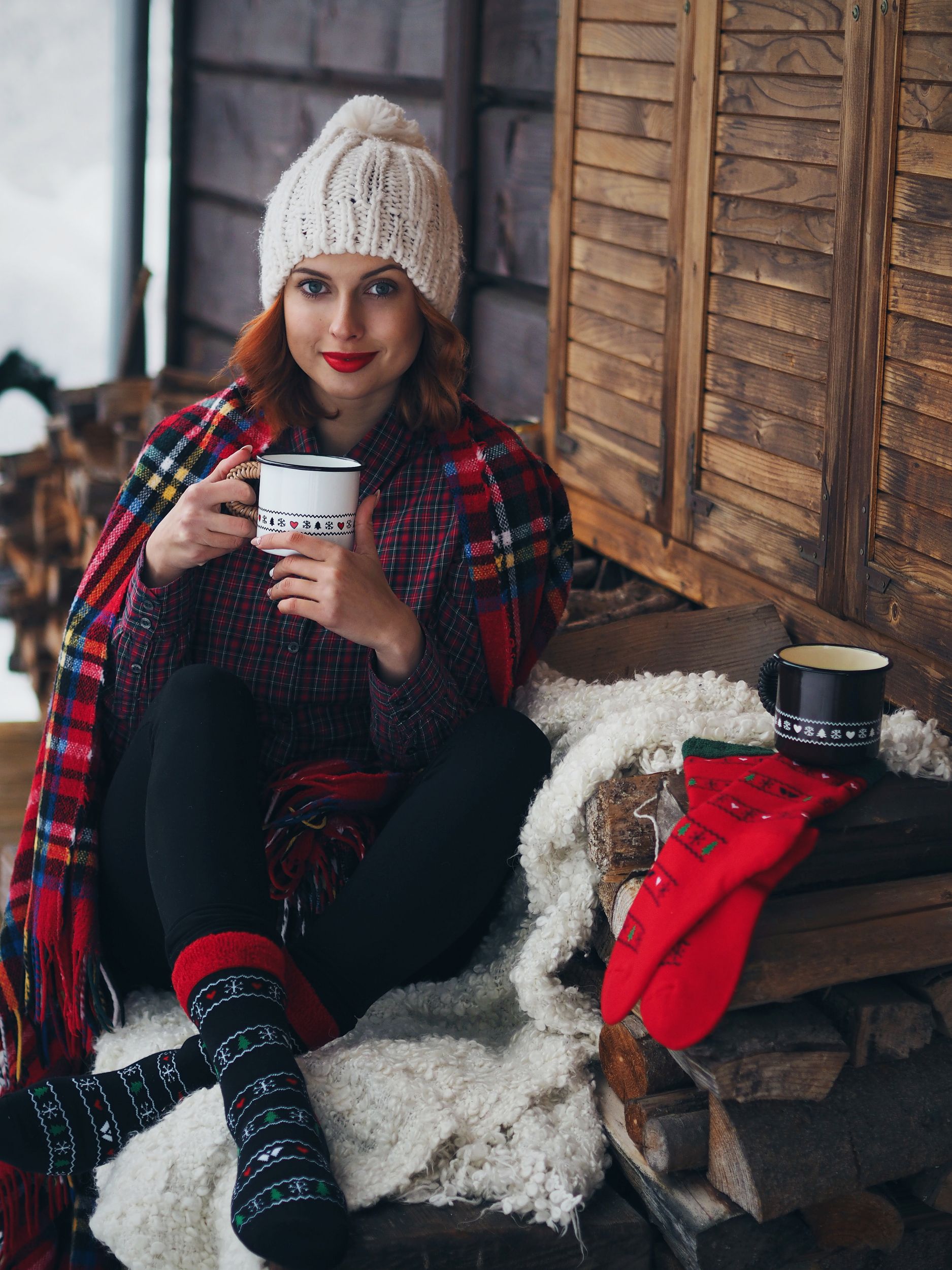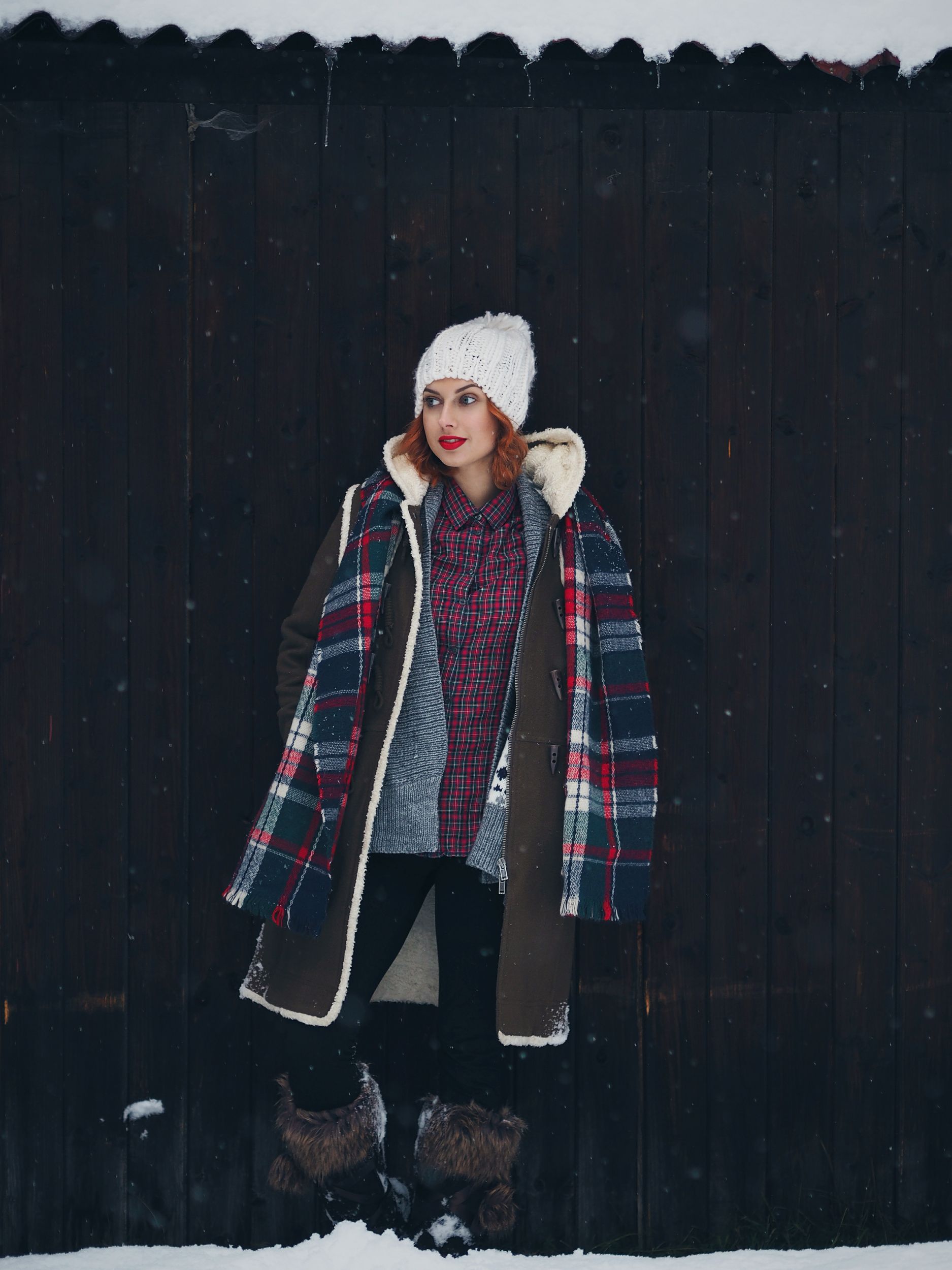 Čižmy: Coqui, Čierne legínové nohavice: neznáma značka, Kabát: Tommy Hilfiger, Šál: Primark, Sveter: second-hand, Košeľa: Tommy Hilfiger // second-hand, Čiapka: Primark, Ponožky: Vianožky Walker’s, Hrnčeky: tvoriť a ľúbiť